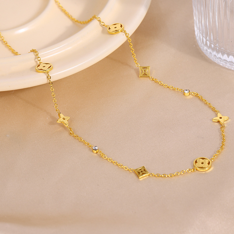Fashion Simple Titanium Steel Four-Leaf Clover Necklace 18K Gold Non-Fading Swan Collarbone Chain Female Instagram Niche Design Jewelry